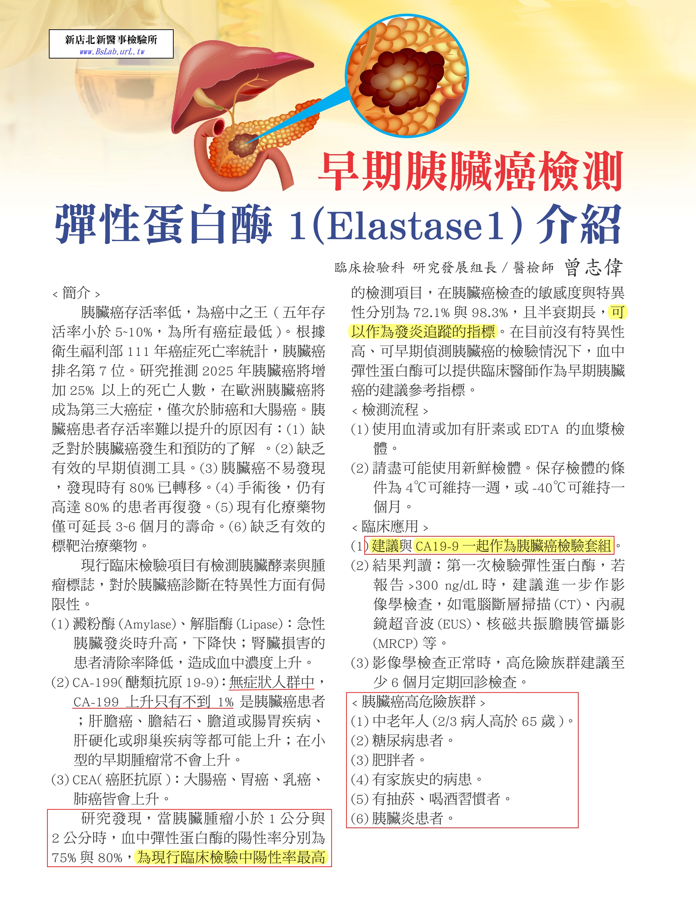 检测早期胰脏癌( Elastase-1 )胰脏弹性蛋白酶-1新应用